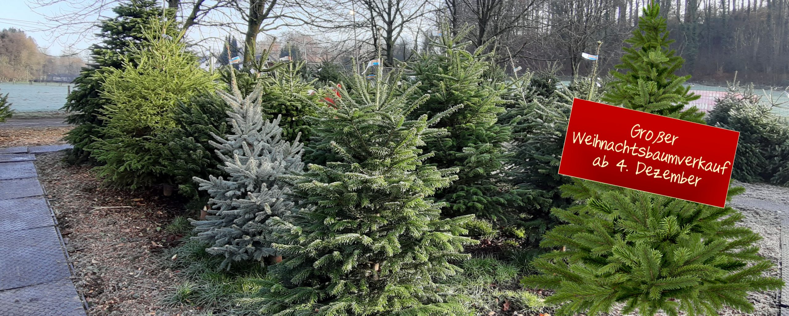 Unser Weihnachtsbaumverkauf hat für Sie ab 4.12. bis einschließlich 23.12. (je nach Bestand) von 9 bis 18 Uhr geöffnet (bei Verfügbarkeit):